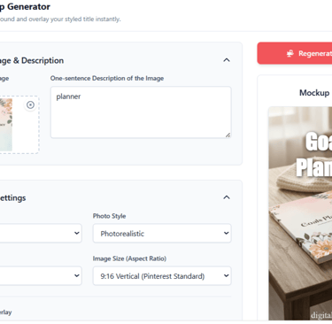 I upload a basic image—like a screenshot of a planner or a product—and the tool places it into realistic lifestyle scenes. Desk setups, cozy workspaces, coffee shop vibes… all without staging photos or setting up props.